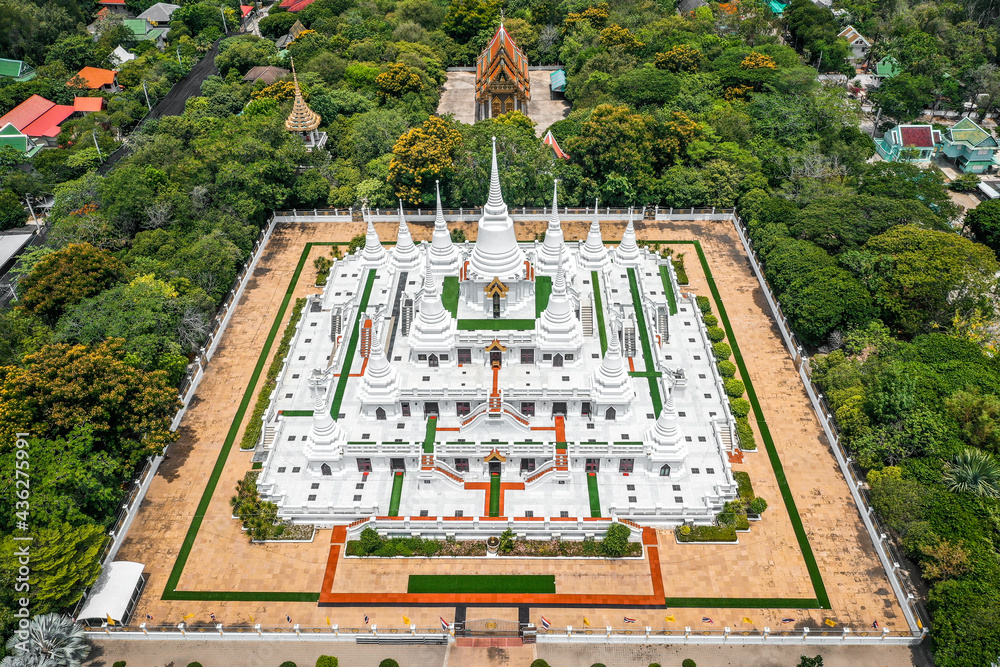 Fotografia Aerial view of Wat Asokaram, temple in south Bangkok, Thailand