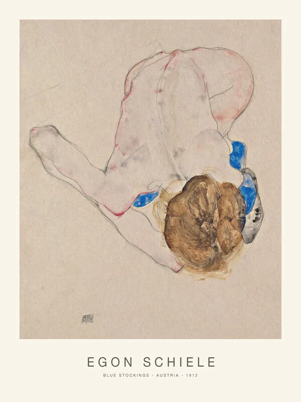 Autocolante Blue Stockings (Vintage Female Nude / Naked Lady) - Egon Schiele