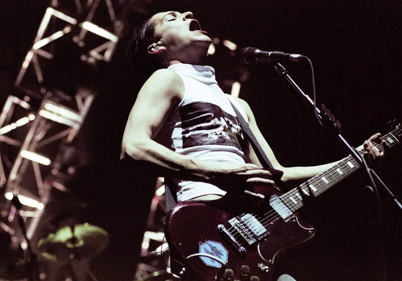 NETHERLANDS - APRIL 11: Photo of PLACEBO; 11-04-2001/PLACEBO/HEINEKEN MUSIC HAL/A'DAM (Photo by Peter Pakvis/Redferns)