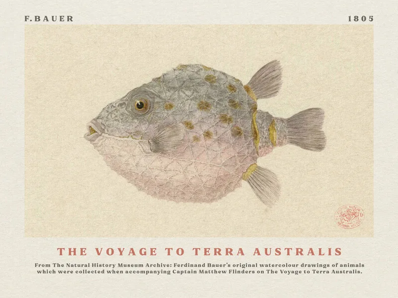 Autocolante Watercolour Boxfish from The Voyage to Terra Australis (Vintage Academia) - Ferdinand Bauer