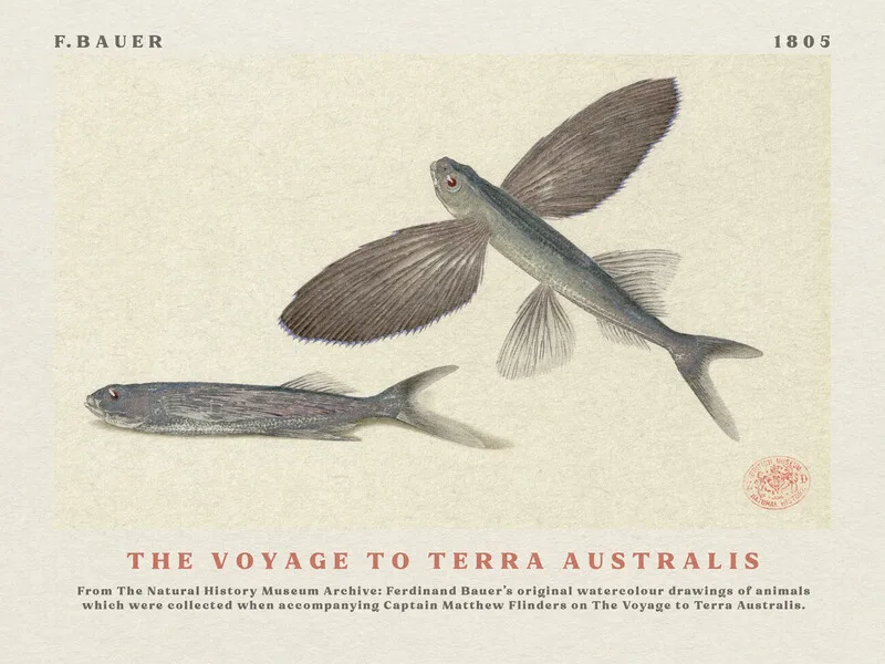 Autocolante Watercolour Flying Fish from The Voyage to Terra Australis (Vintage Academia) - Ferdinand Bauer