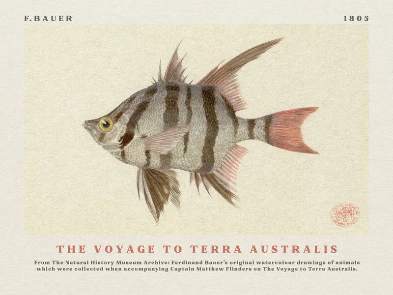 Quadro em tela Watercolour Old Wife Fish from The Voyage to Terra Australis (Vintage Academia) - Ferdinand Bauer