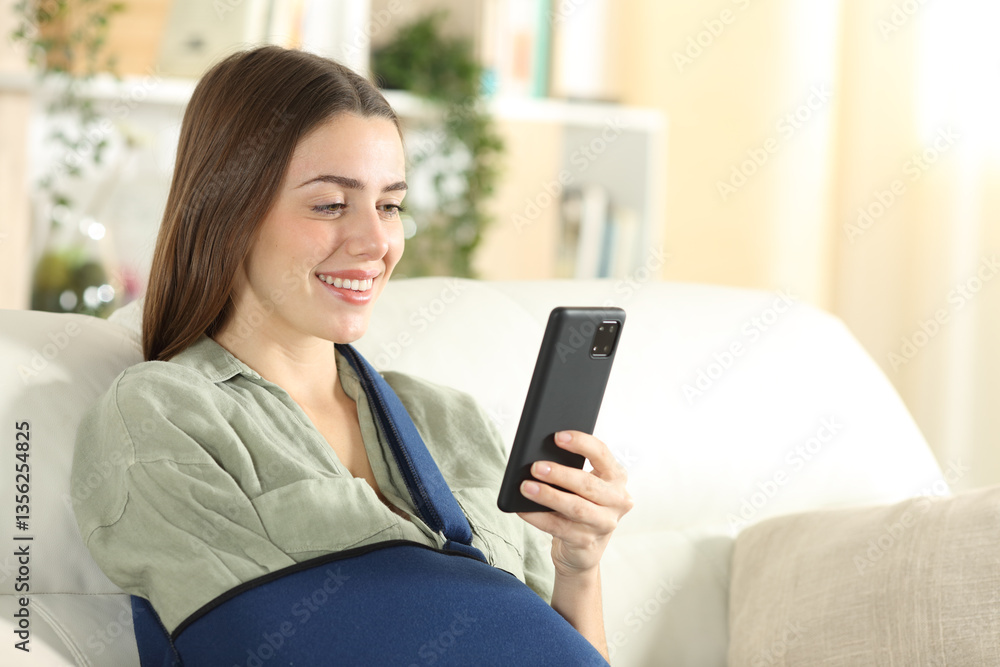 Autocolante Happy convalescent woman using phone in a house