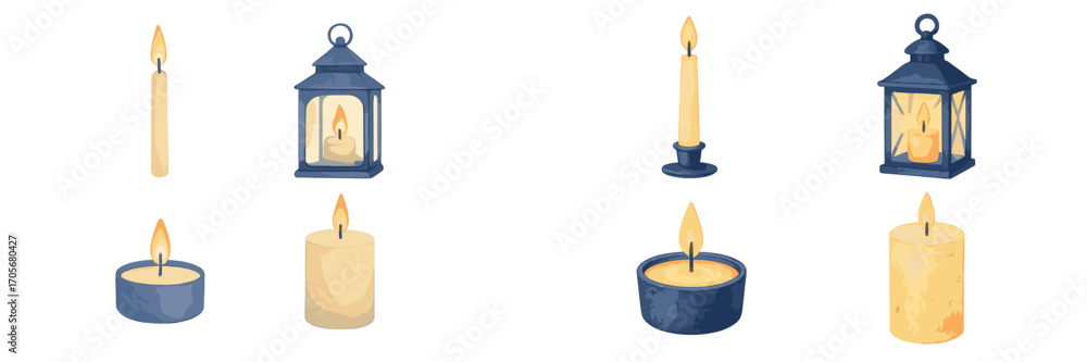 Autocolante Collection of various lit candles including pillar, taper, and tea light designs