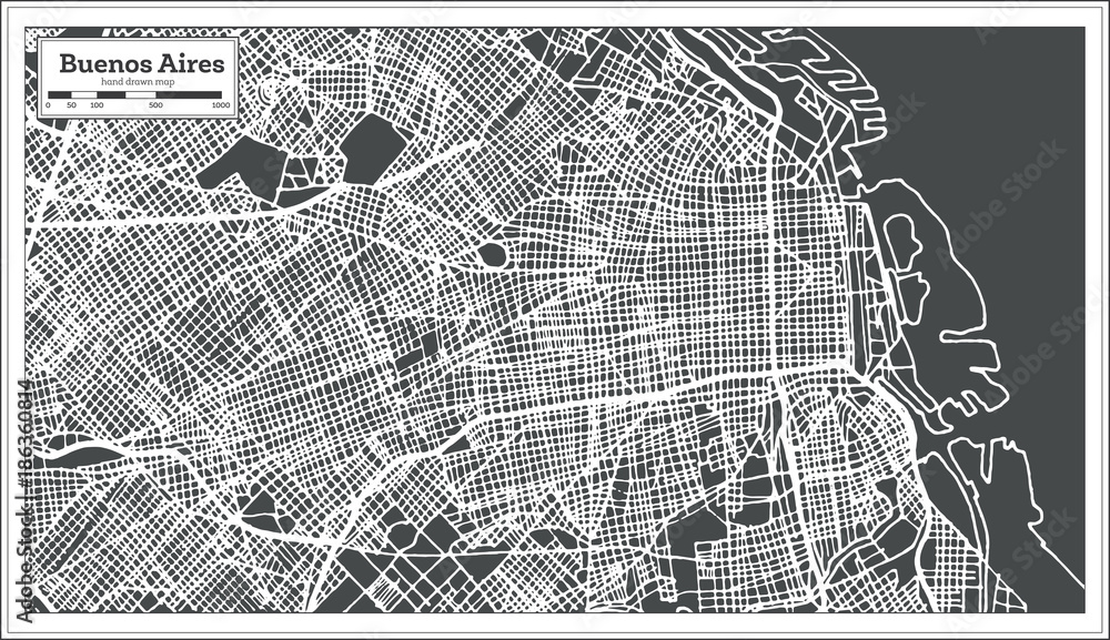 Autocolante Buenos Aires Argentina City Map in Retro Style. Outline Map.