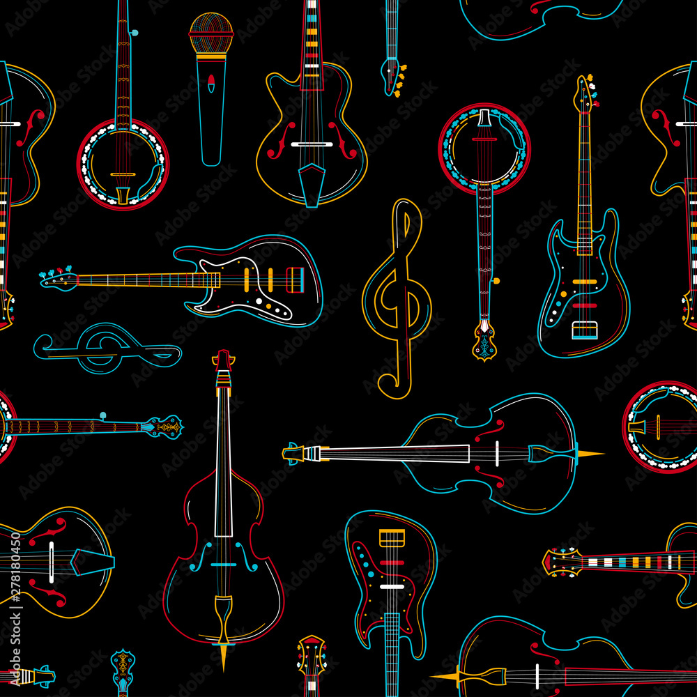 Autocolante Musical equipment hand drawn outline seamless pattern