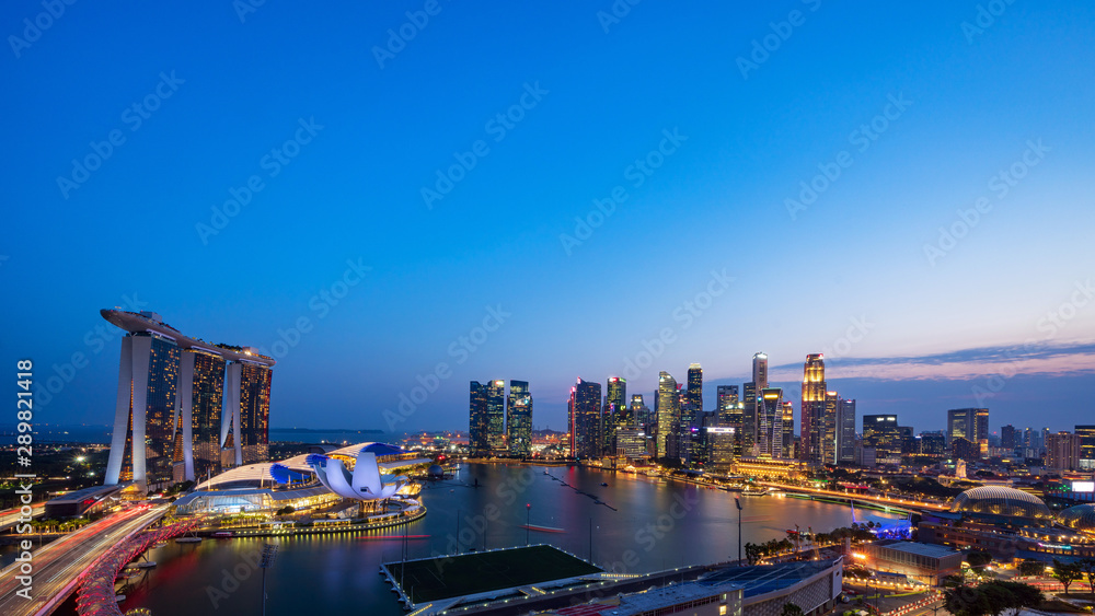 Autocolante Wide panorama of Singapore skyscrapers at dusk