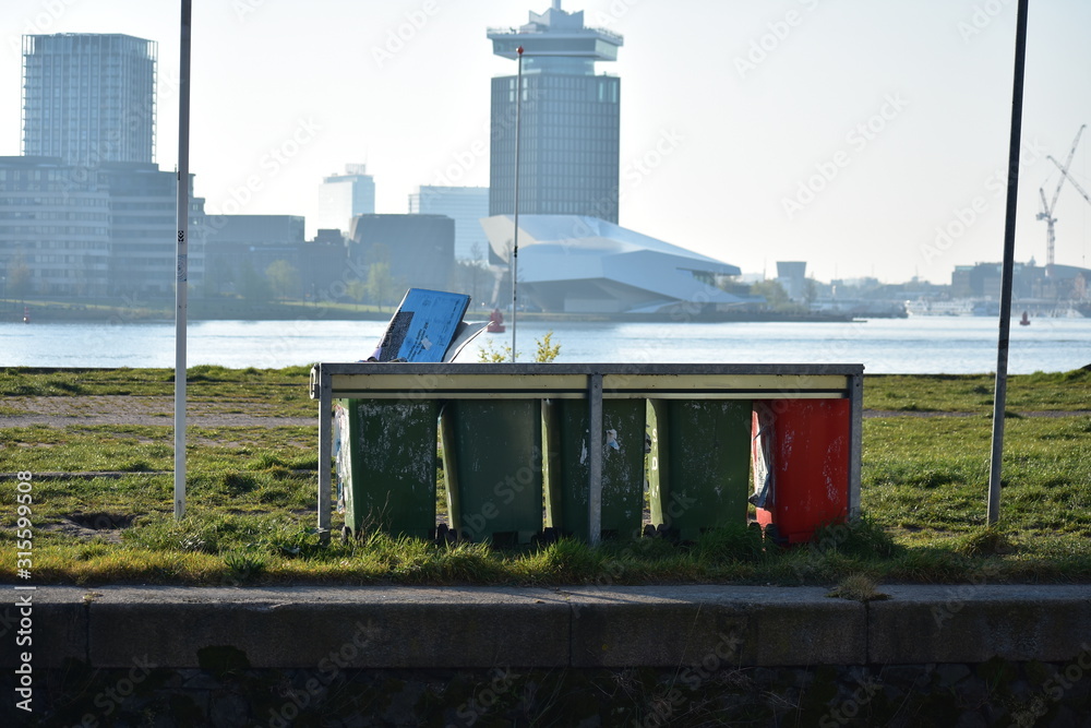 Autocolante Recycling bin landscape in Houthavens Amsterdam The Netherlands