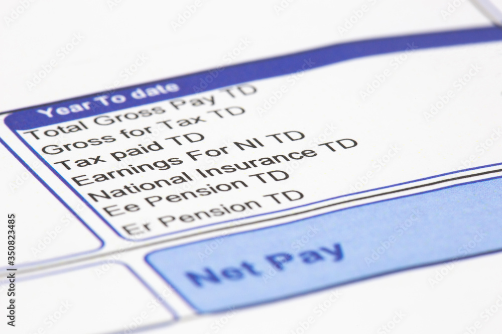 Autocolante Wage pay slip showing pension, national insurance and tax earnings deductions