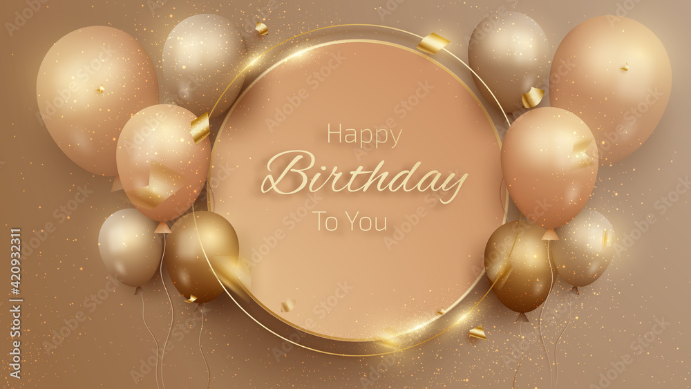 Autocolante Happy birthday card with luxury balloons and ribbon