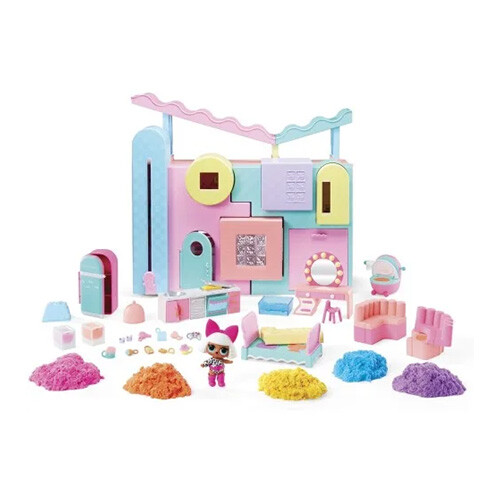 A L.O.L. Surprise Squish Sand Magic House é uma casa interactiva com mais de 50 surpresas. Inclui uma boneca Lady Diva exclusiva, 5 cores de areia moldável e 15 moldes com surpresas escondidas. Uma óptima prenda para crianças a partir dos 4 anos!