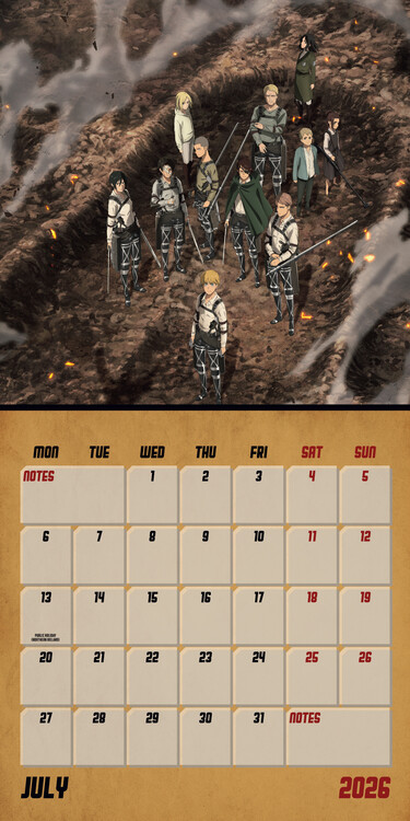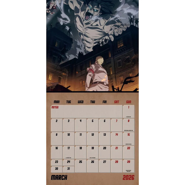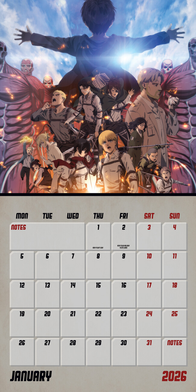 • O calendário Attack On Titan pode ser pendurado em qualquer parede