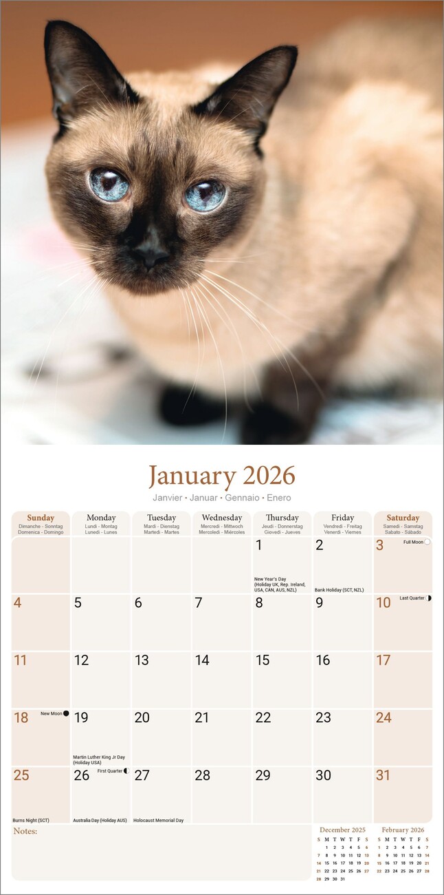 • O calendário Cats - Siamese pode ser pendurado em qualquer parede