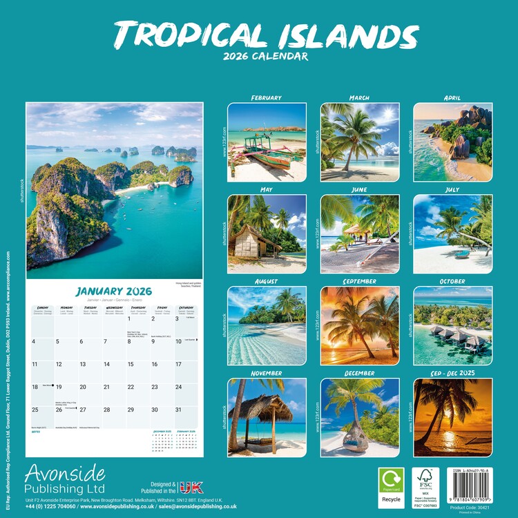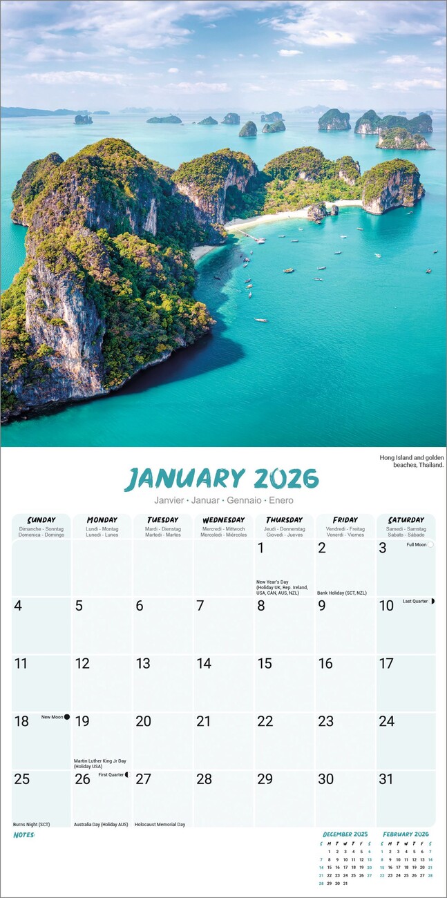 • O calendário Tropical Islands pode ser pendurado em qualquer parede