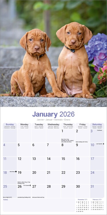 • O calendário Vizsla pode ser pendurado em qualquer parede