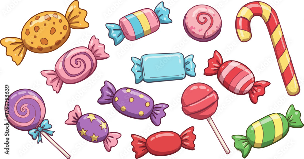 Fotografia Colorful assortment of candies including lollipops and wrapped sweets on black b
