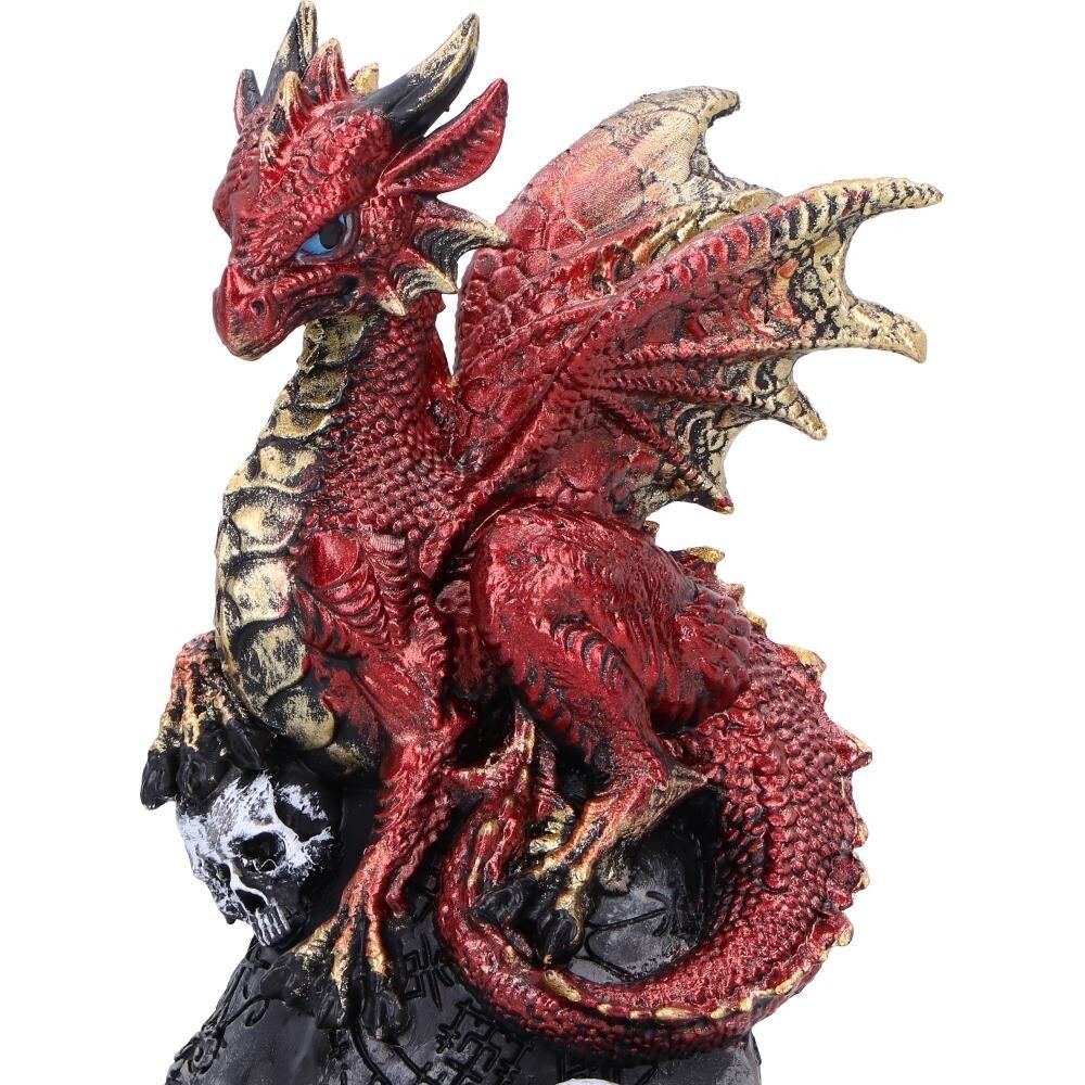 Esta figura de dragão carmesim mostra uma besta vermelha pintada à mão empoleirada numa torre gótica negra, com escamas metálicas rubi realçadas a dourado nas asas. Fundida em resina premium com motivos de caveira na base, é uma peça ousada e ardente para colecionadores de fantasia, apreciadores de decoração gótica e fãs de dragões. Fornecido numa caixa de presente com logótipo, ideal como oferta ou para armazenamento seguro.