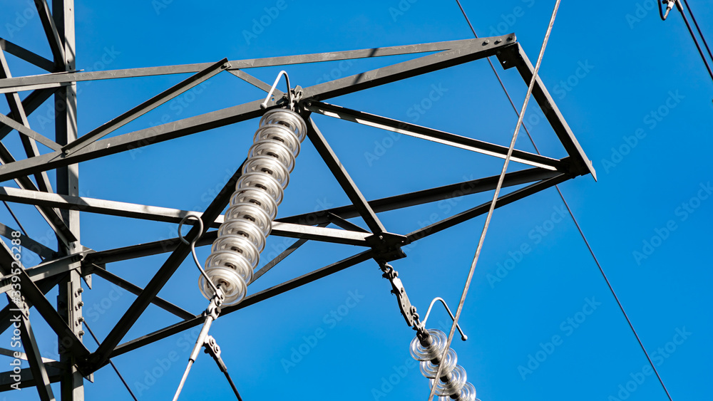 Quadro em tela Electricity pylon insulator hanging from a towers crossbeam