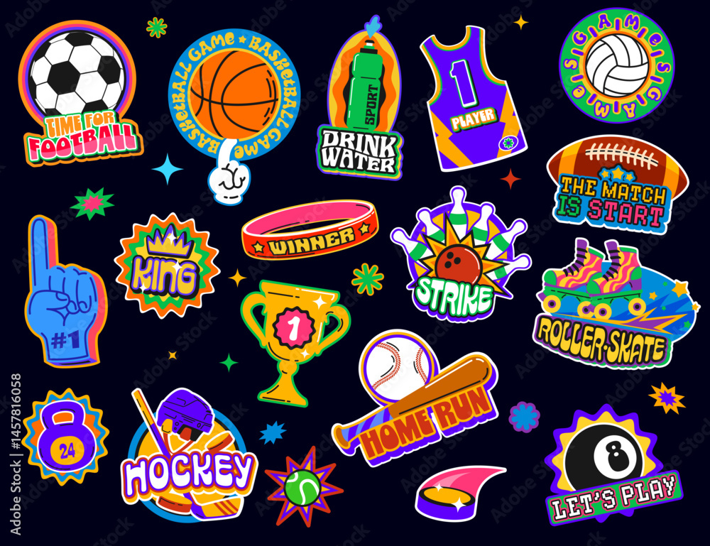Fotografia Funky sporting y2k groovy stickers, sport retro labels