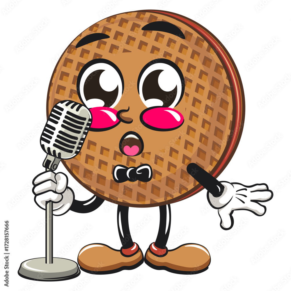 Quadro em tela funny stroopwafel mascot character cute round waffle vector illustration singing