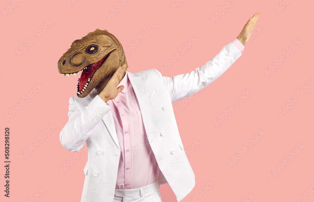 Quadro em tela Funny weird guy in wacky animal mask having fun at crazy party