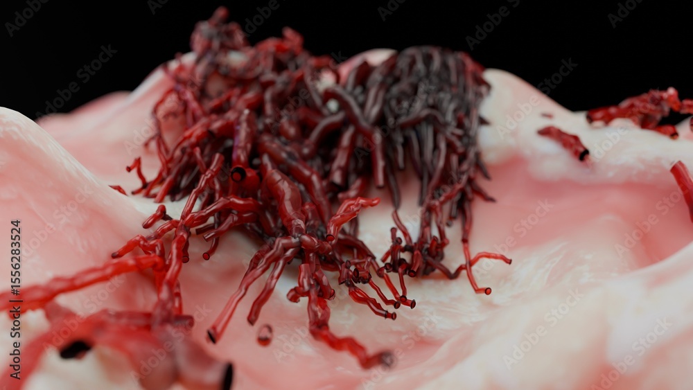 Fotografia Cancer cell growth uncontrollably over tissue, Tumor infection cells and spreading, Invasive inflammation metastasis cancerous