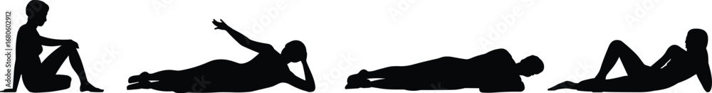 Fotografia Silhouette vector of four people resting in various relaxed sitting and lying do