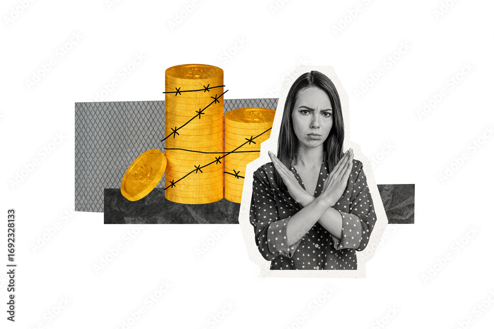 Fotografia Composite photo collage of dissatisfied strict gild show crossed hands arrested