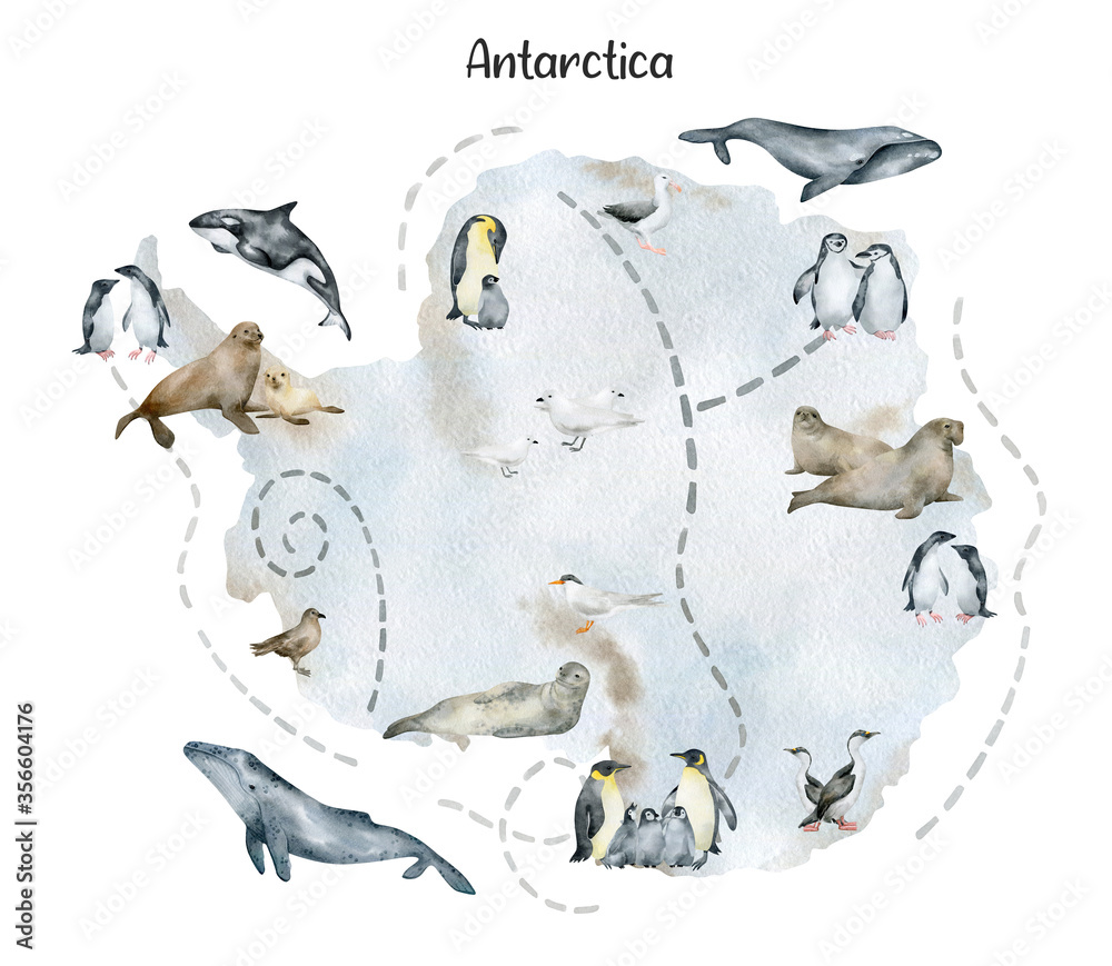 Fotografia Watercolor illustration with map of Antarctica