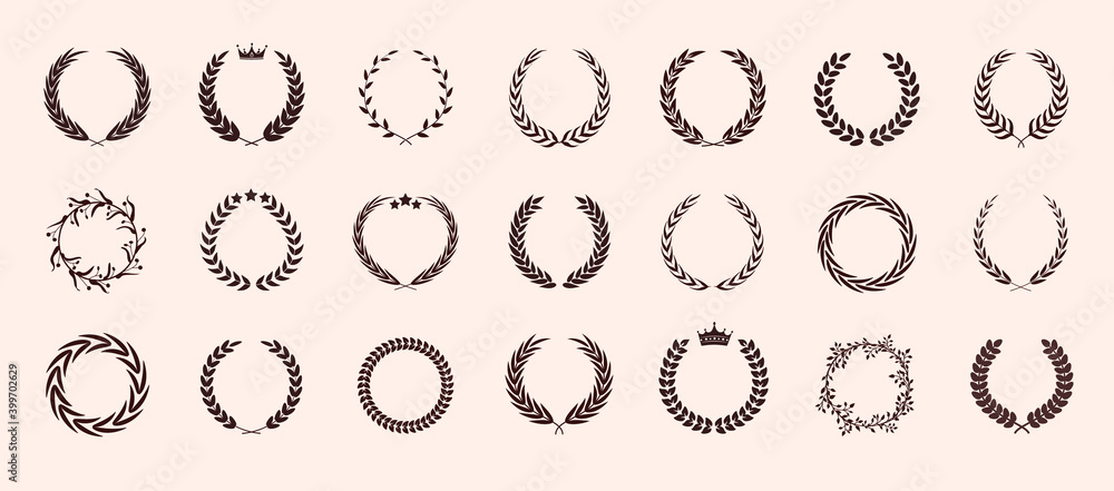 Fotografia Set of different vintage silhouette laurel foliate and olive wreaths depicting an award, achievement, heraldry, nobility, emblem, logo, border