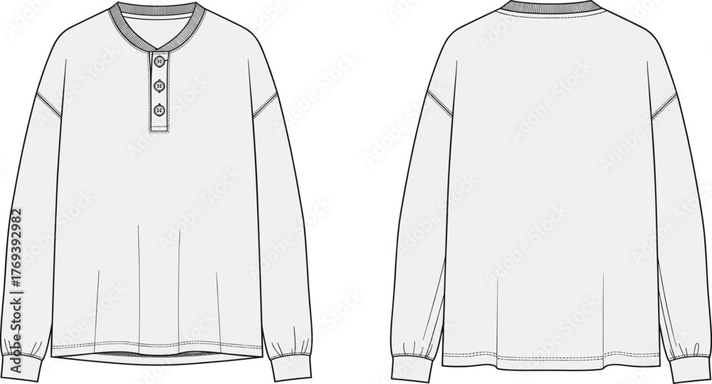 Quadro em tela Long sleeve henley shirt, fashion flat sketch, technical garment drawing, appare