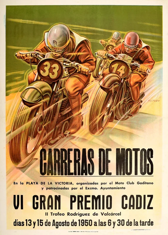 Autocolante Carreras De Motos VI Gran Premio Cadiz Grand Prix Race 1950
