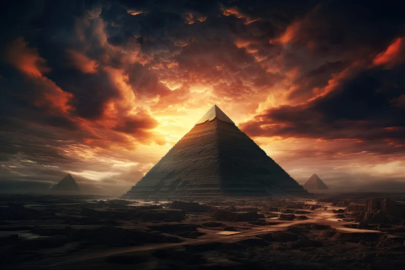 Quadro em tela Egyptian pyramid at sunset