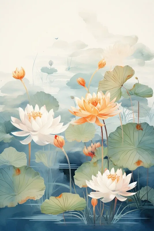 Poster Flowers in the pond in Japanese painting style