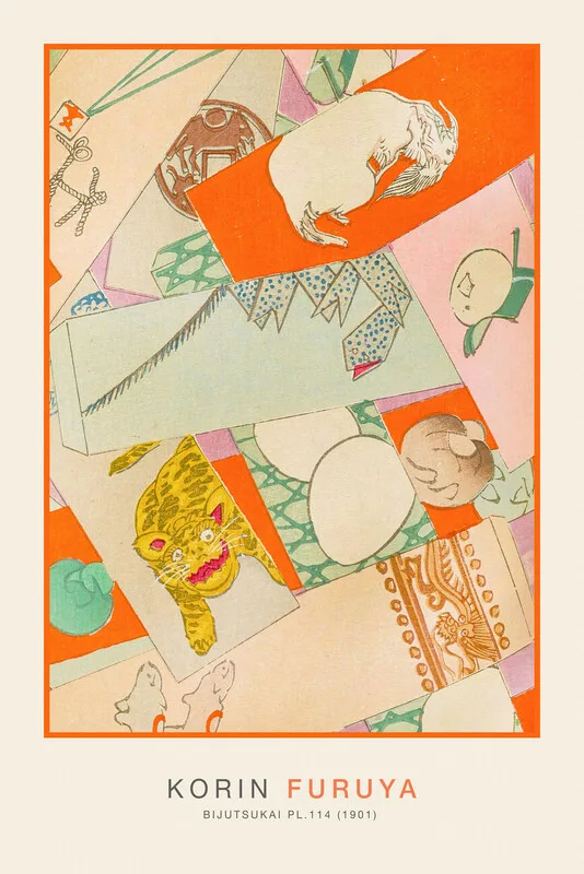 Autocolante Japanese Tiger & Goat in Red (Japandi) - Furuya Kōrin