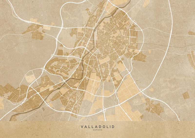 Poster Map of Valladolid (Spain) in sepia vintage syle