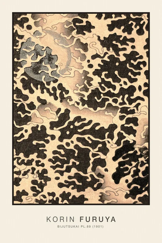 Quadro em tela Splashing Waves in Black (Japandi) - Furuya Kōrin