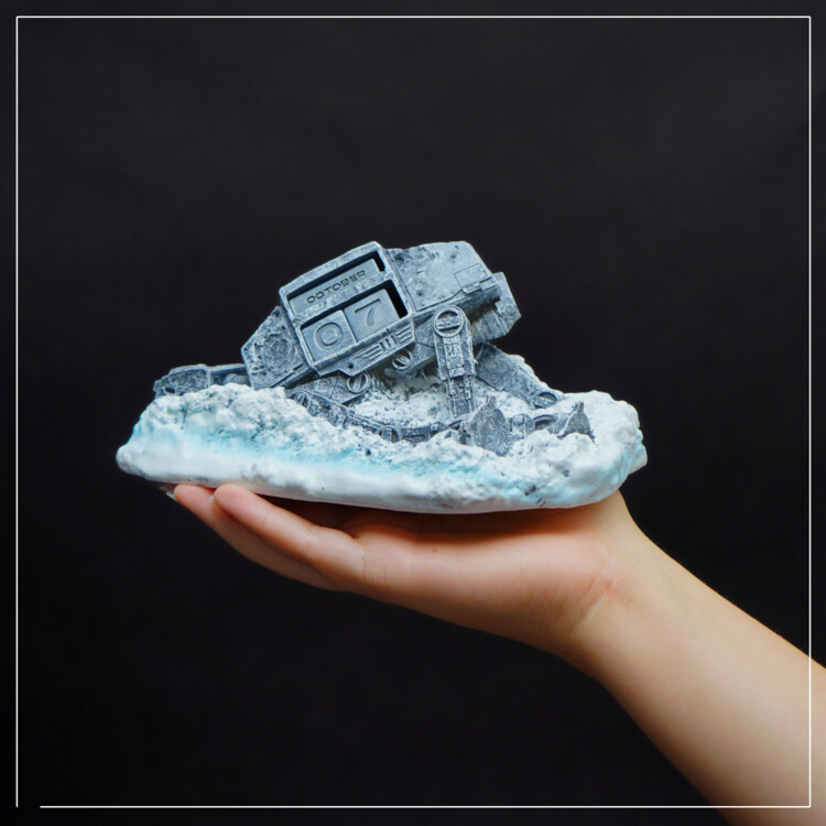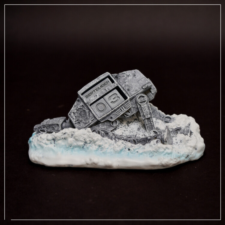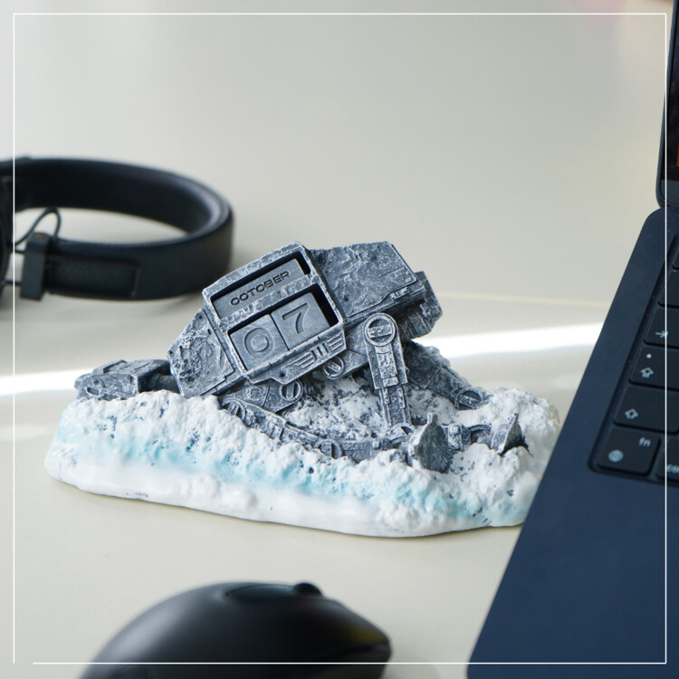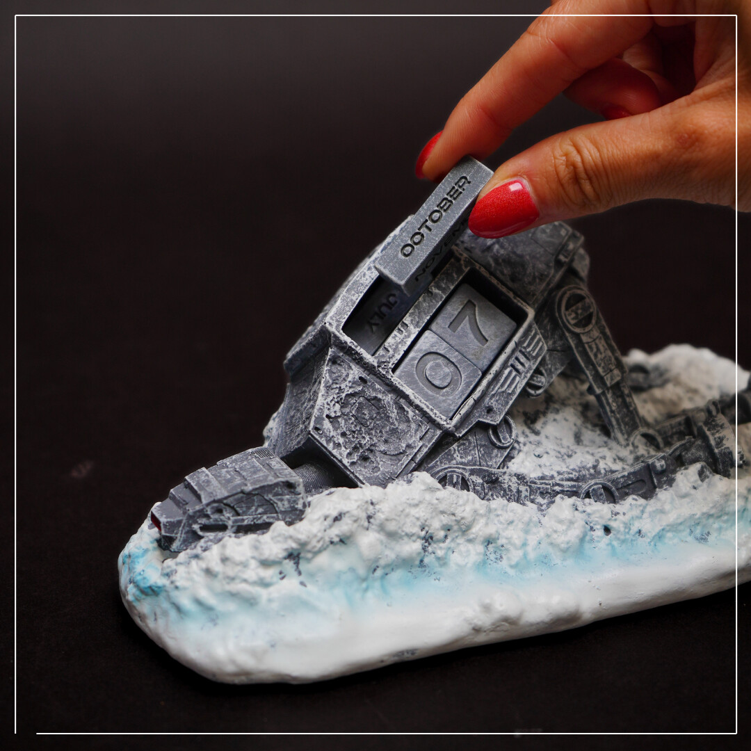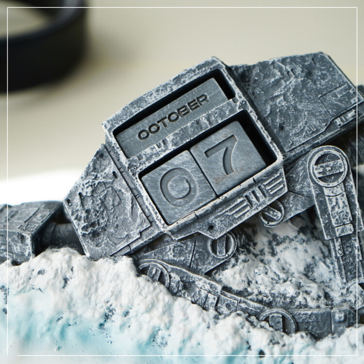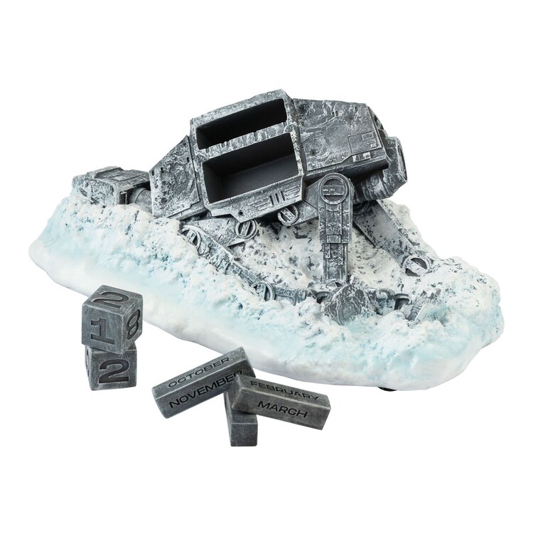 O calendário 3D icónico com o motivo do transportador da Guerra das Estrelas tem dimensões compactas de 20,1 x 7,8 x 12,2 cm.