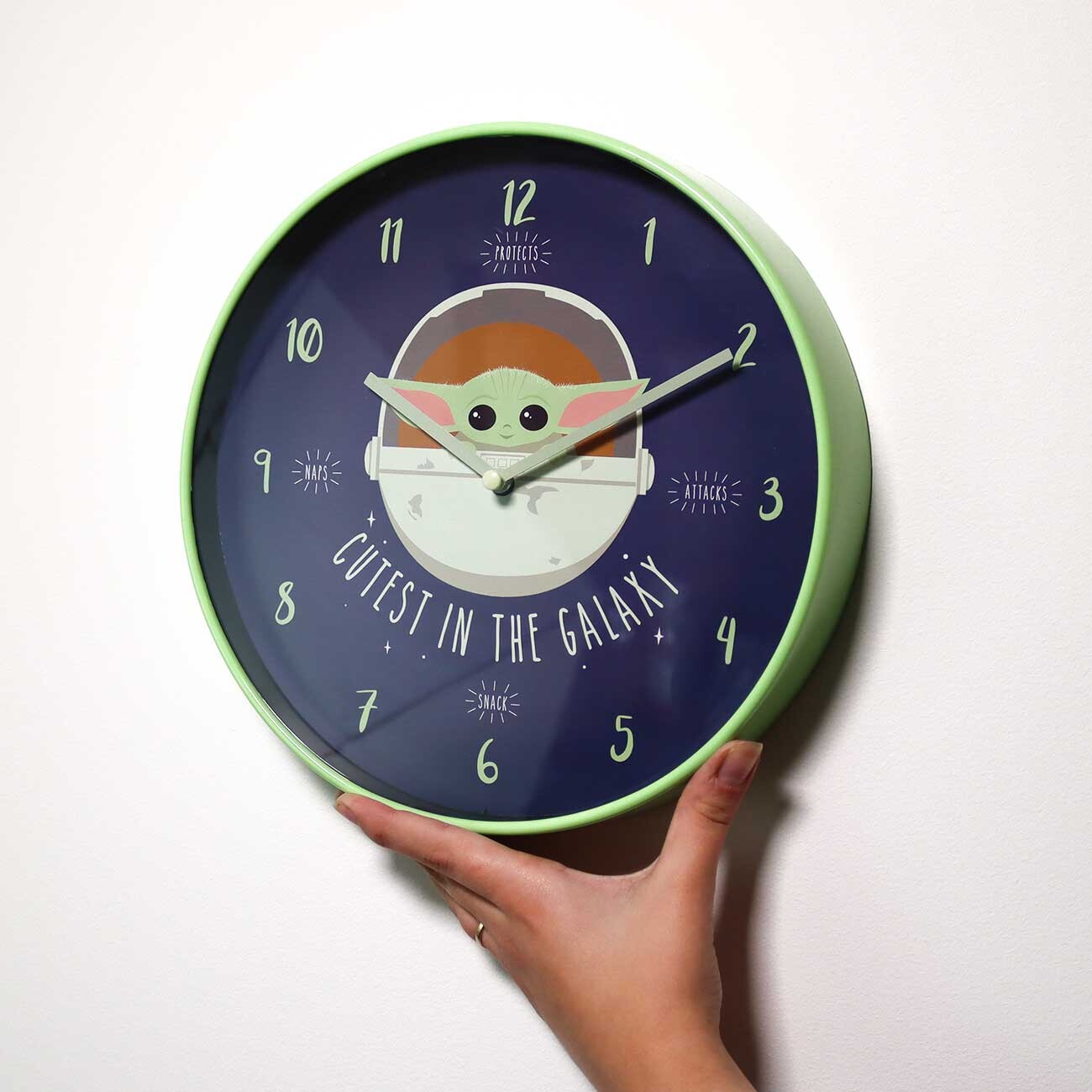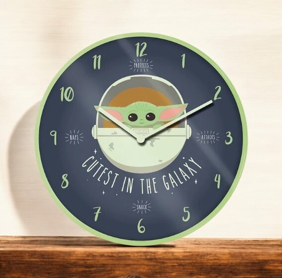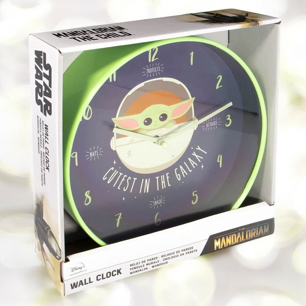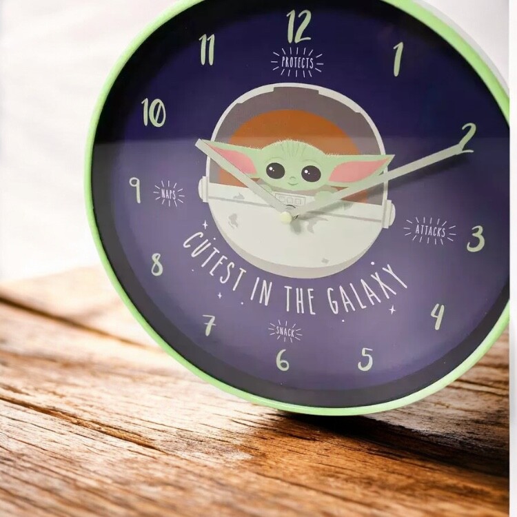 Todos os amantes da Guerra das Estrelas e dos Mandalorianos precisam de um relógio de parede silencioso com um motivo de Yoda bebé! O relógio tem um diâmetro de 25,4 cm e só precisa de uma pilha AA para funcionar!