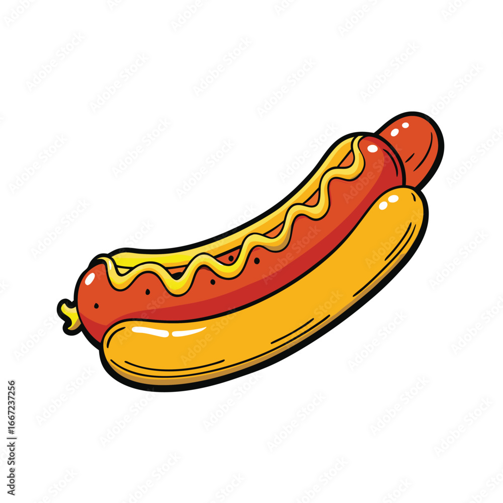 Murais de parede Delicious grilled bratwurst sausage with a generous smear of yellow mustard on a