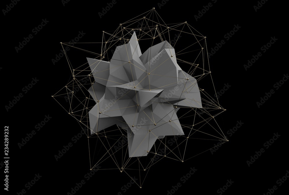 Murais de parede Modern digital abstract gray low poly object with golden atomic cage