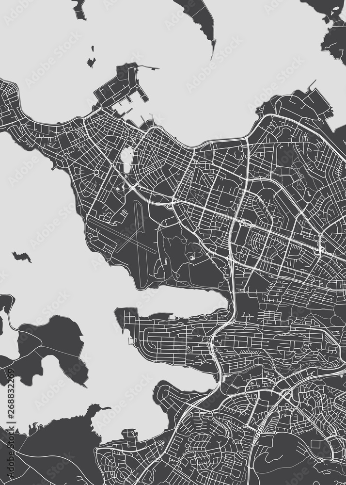 Murais de parede City map Reykjavik, monochrome detailed plan, vector illustration