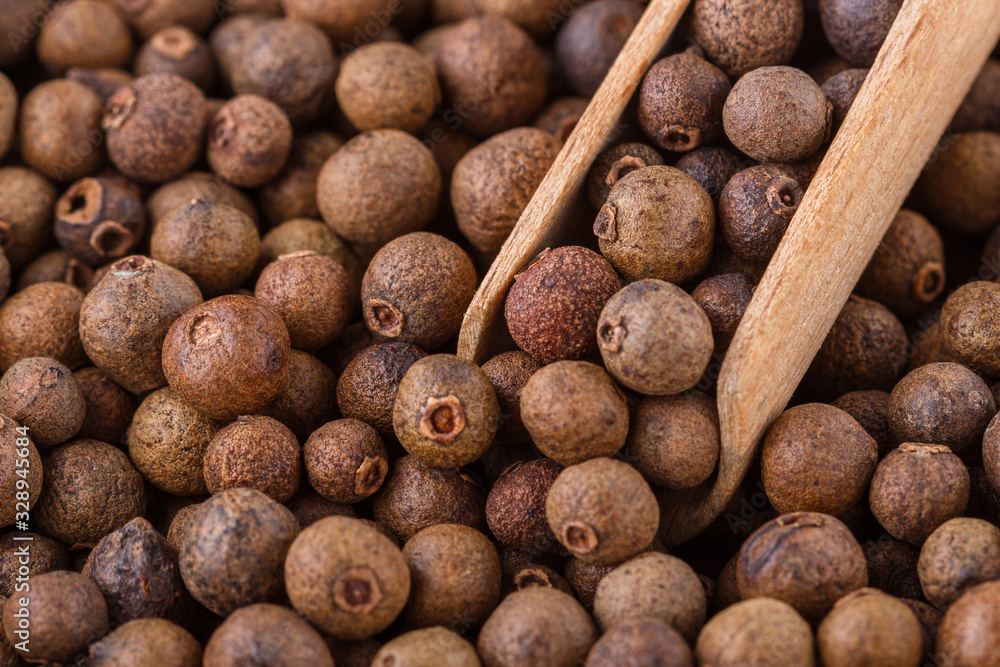 Murais de parede fresh spicy peppers allspice on white acrylic background