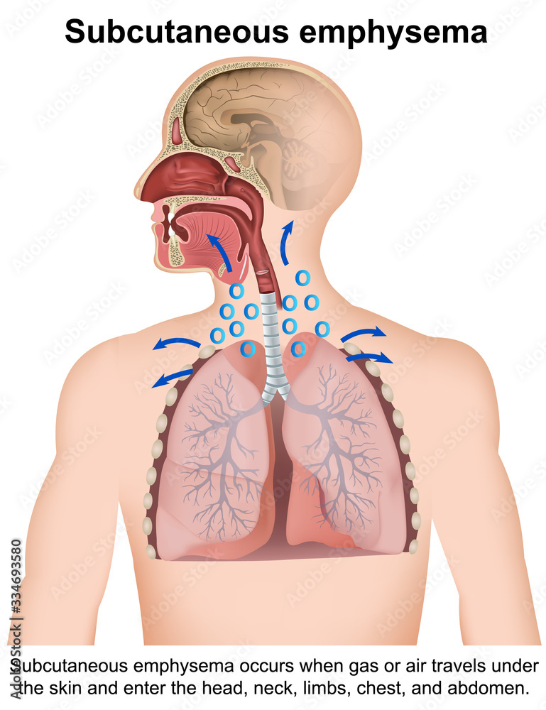 Murais de parede Subcutaneous emphysema medical vector illustration with english description on w