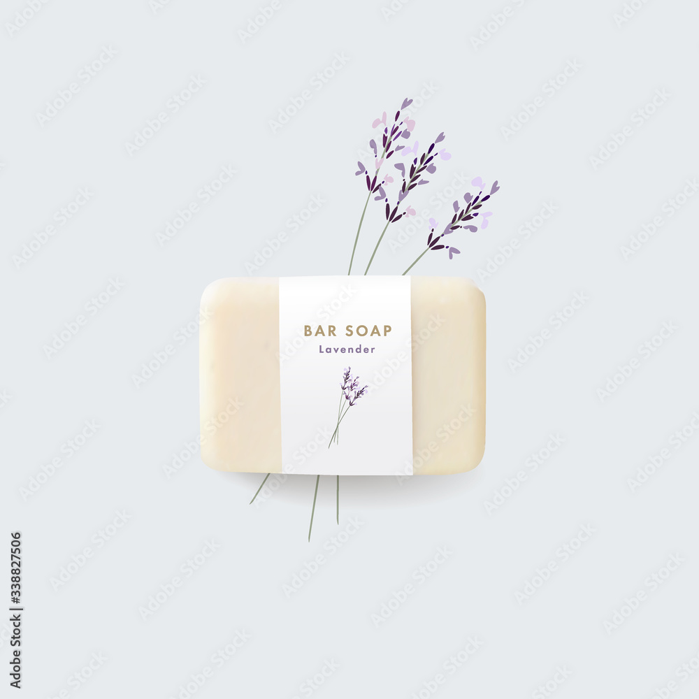 Murais de parede 3D realistic bar soap illustration mock-up, template with paper label