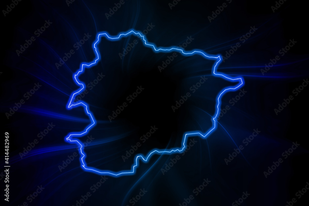Murais de parede Glowing Map of Andorra, modern blue outline map