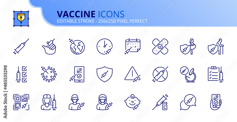 Murais de parede Simple set of outline icons about vaccine