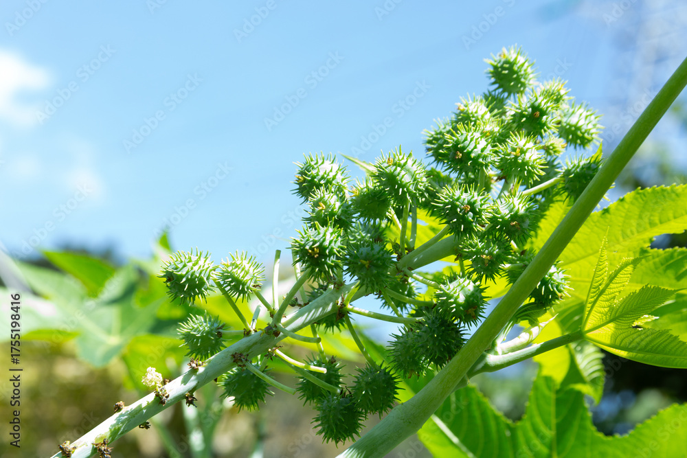 Quadro em tela Seeds And Green Leaves Of Ricinus Communis For The Production Of Industrial Oil