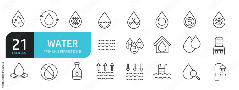 Fotografia Set of line icons related to gwater, mineral, water drop