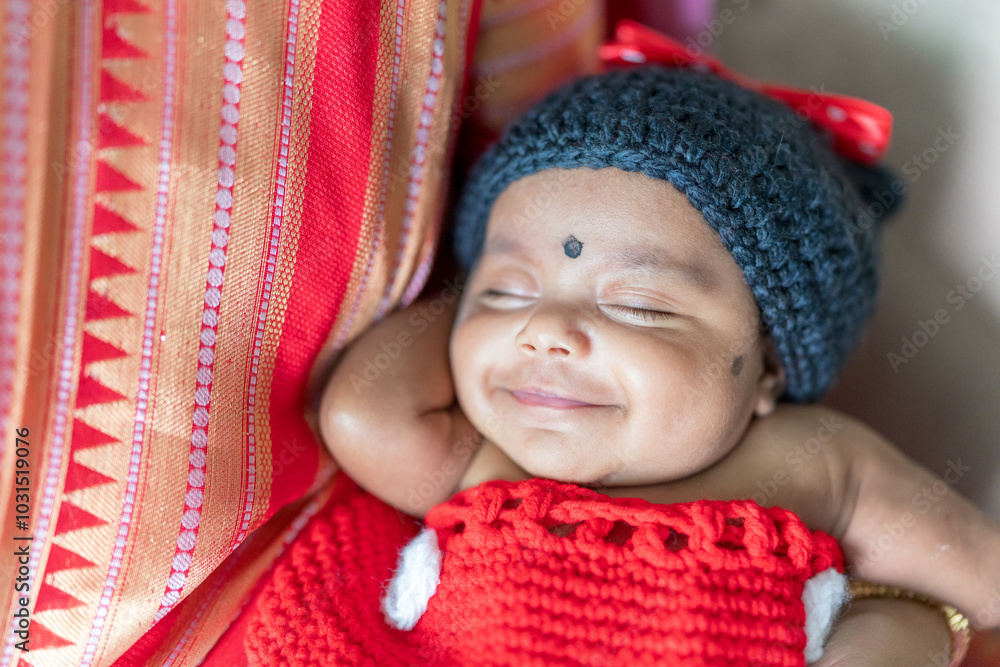 Quadro em tela ndian family spending time together, wearing traditional and casual outfits with a baby, a young girl, and grandparents in a high-rise apartment in Kuala Lumpur, Malaysia